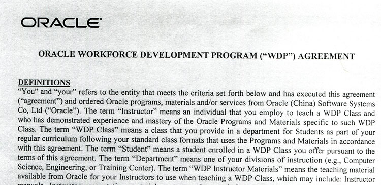 甲骨文渭南合同复印件-甲骨文WDP协议