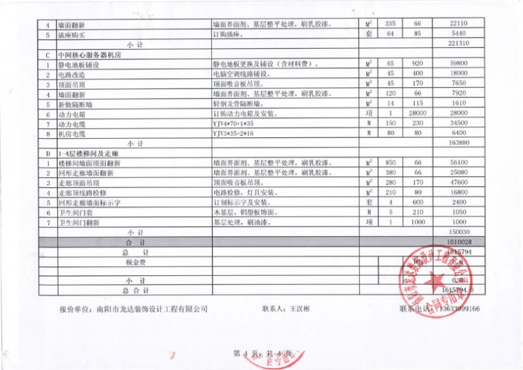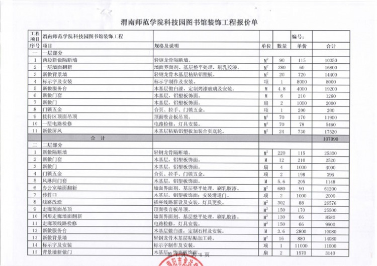 (渭南基地基础建设相关资料)基地装修工程报价单明细