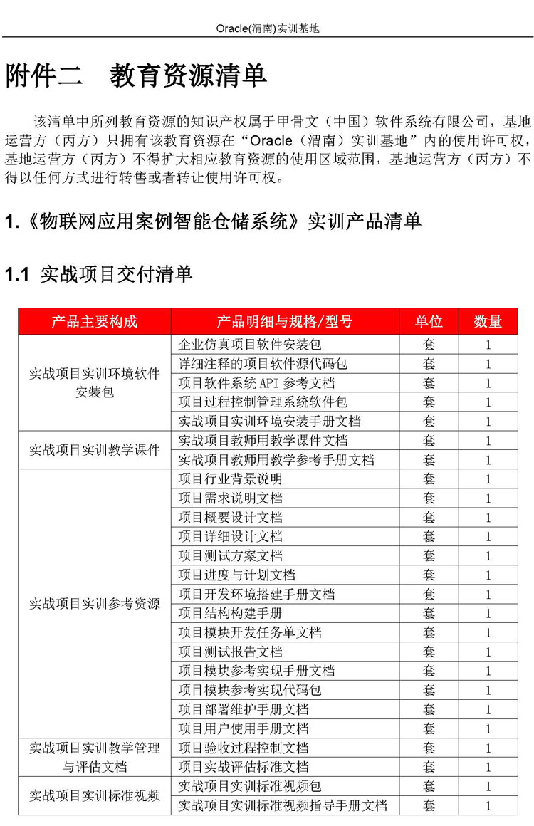附件三 Oracle WDP项目投入软件清单-最终稿0705