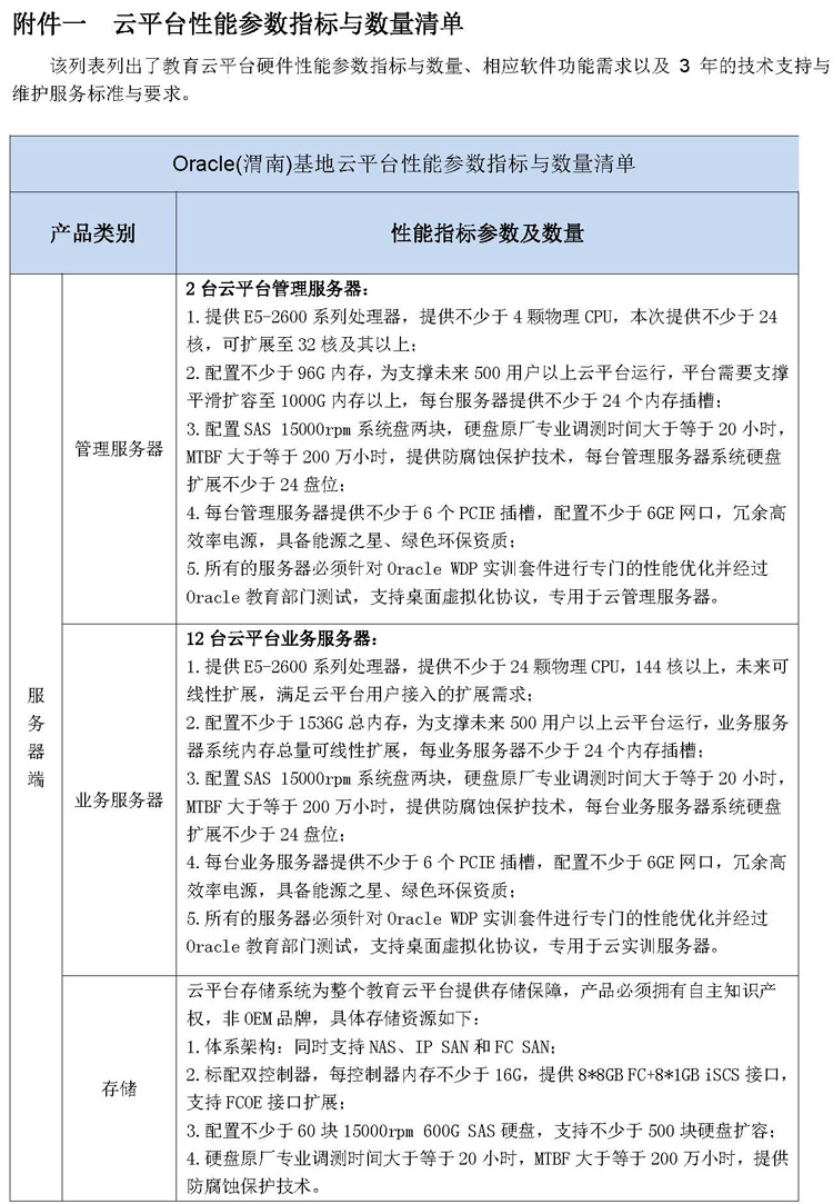 附件一 云平台性能参数指标与数量清单-最终稿0705